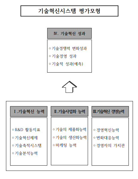 기술혁신능력, 경영능력, 혁신성, 사업화능력 총 4가지로 구성 되어 있음.