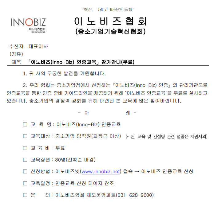 Inovation(혁신) + Business(기업)의 합성어이며, 기술혁신 중소기업을 말합니다.