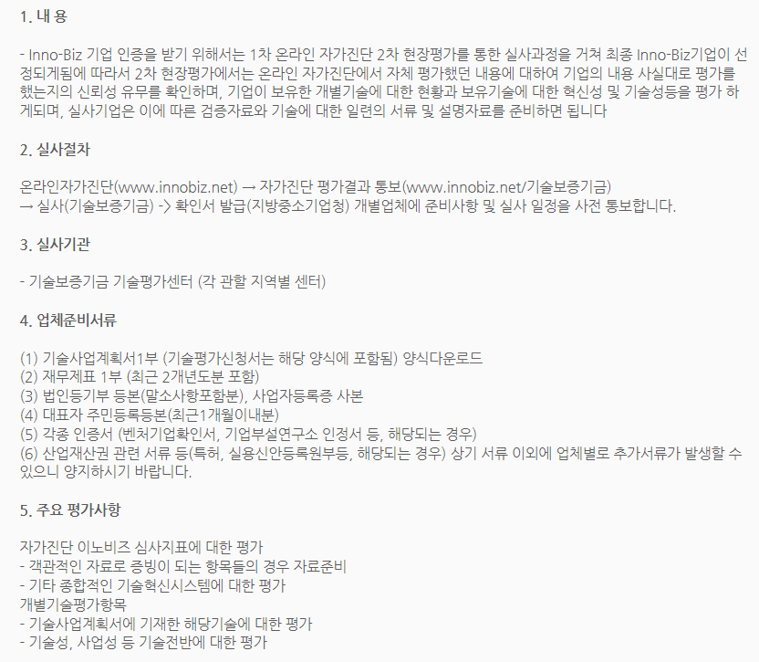 평가점수가 700점 이상이어야만 이노비지인증이 가능함.