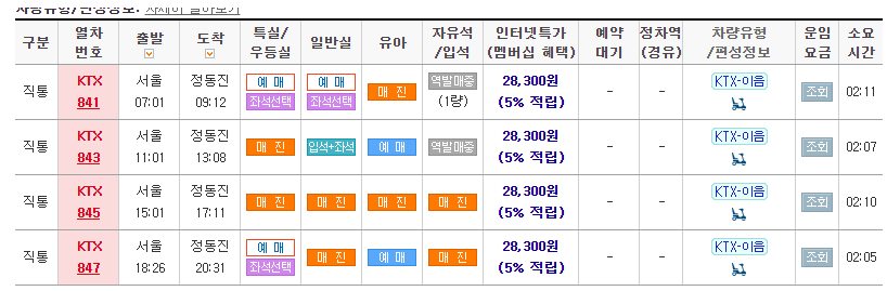 서울에서 정동진가는 KTX는 서울역 과 청량리역에서 탑승가능하다. 소요시간은 2시간정도다.