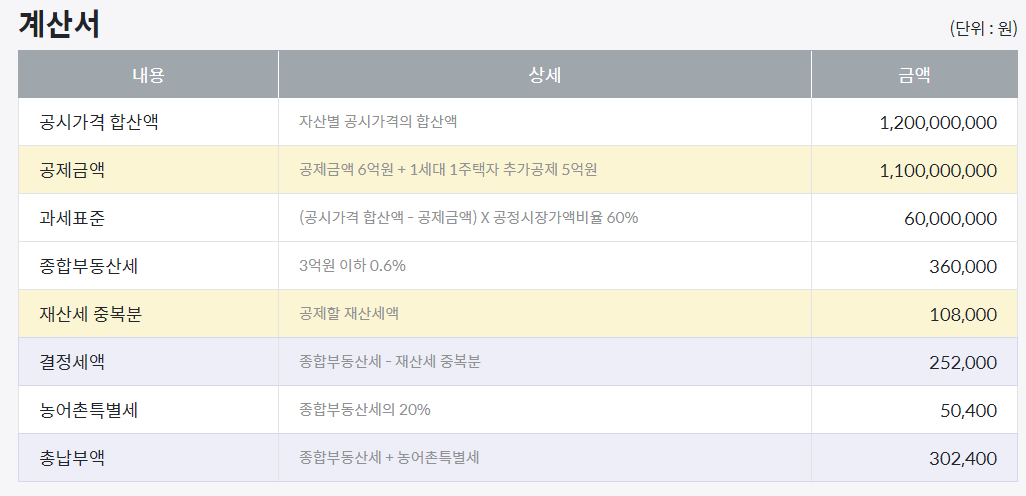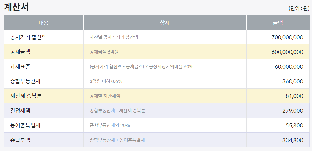 공시가 합이 7억일 경우,