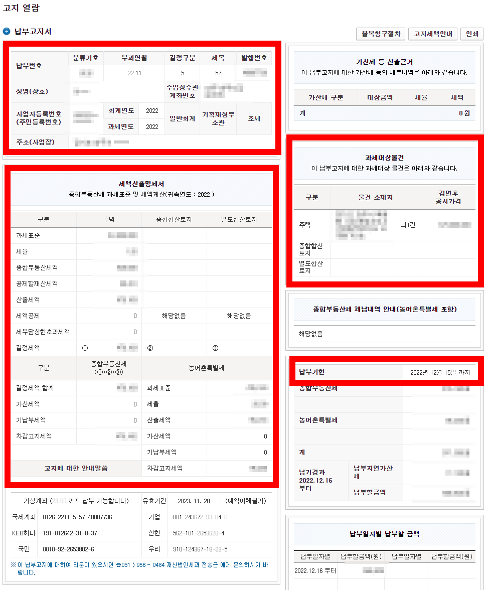 납부고지서 상세내역서가 나타납니다.