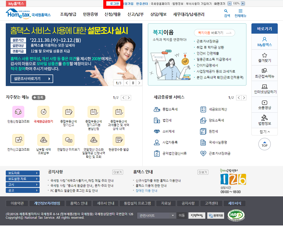 1번 홈택스 상담